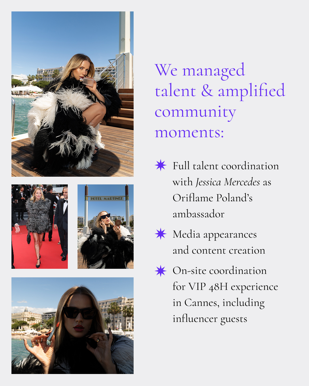 From the Oriflame showroom straight to the spotlight – brand ambasador @jemerced glowing in Cannes, wearing looks styled and coordinated by us